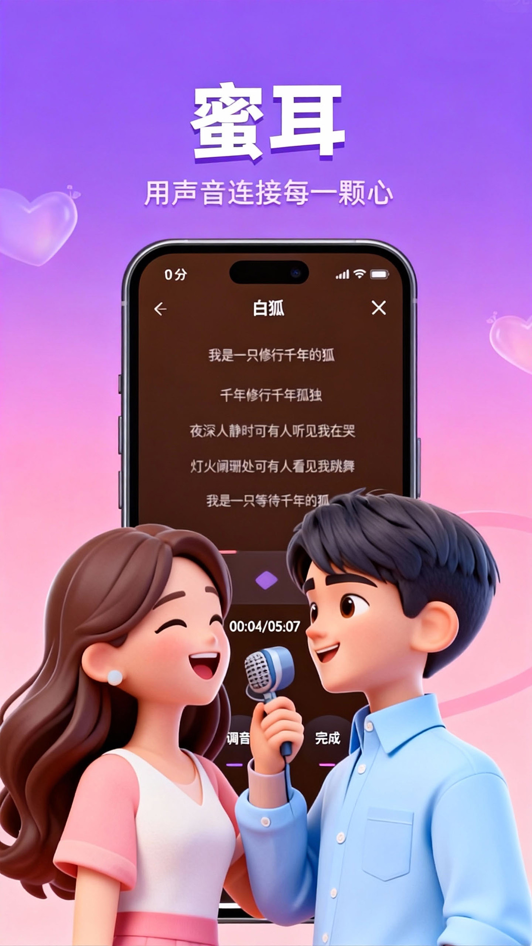 【蜜耳】你的线上KTV交友房 在这里,你可以: • 一键开麦,秒变歌神 • 主题派对,嗨唱交友两不误 用歌声遇见懂你的人,让每一个好声音都不被辜负