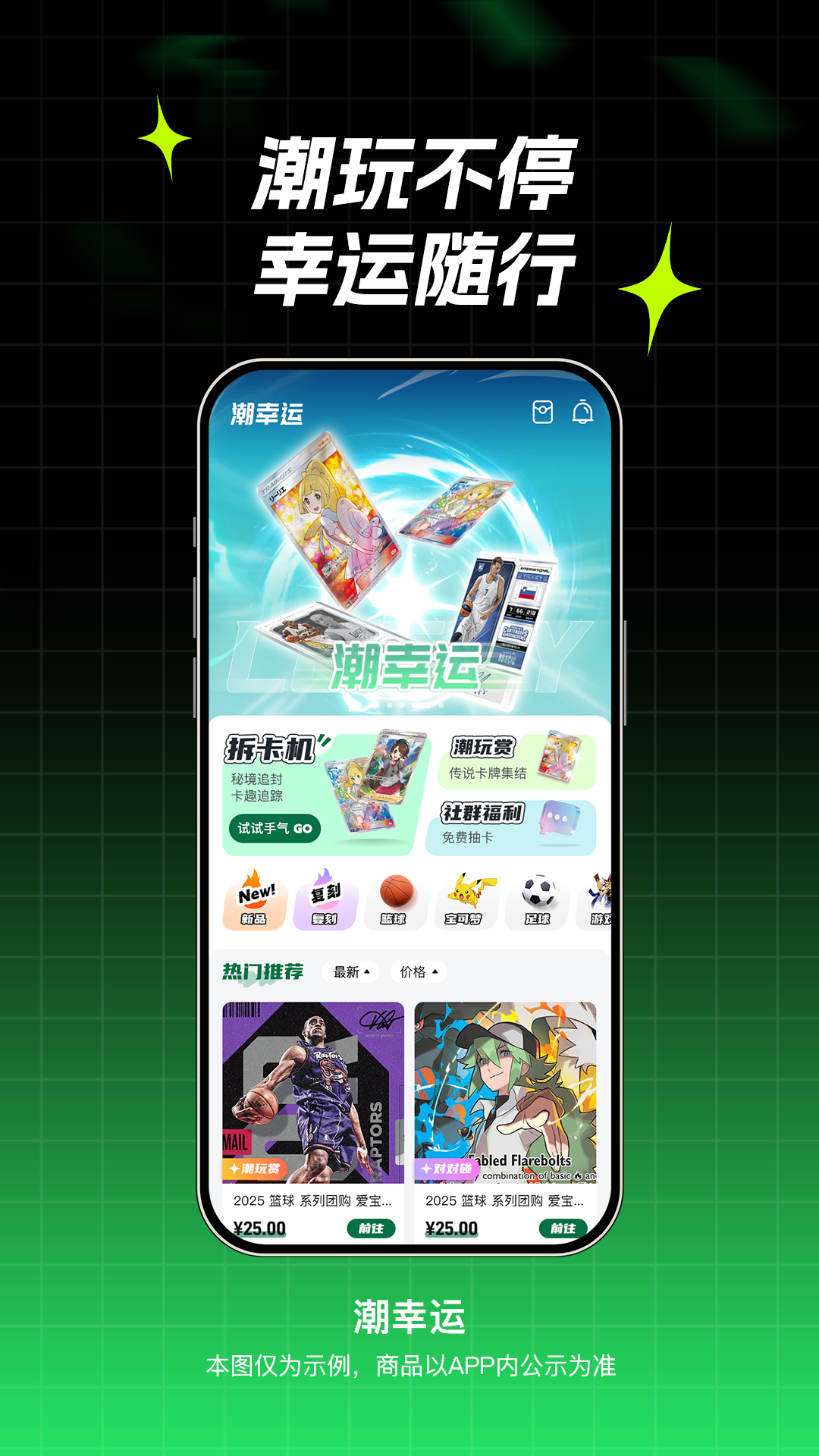 潮玩不停,幸运随行! 【海量丰富卡牌】宝可梦、球星卡,热门IP卡牌齐聚! 【热门潮玩手办】泡泡玛特、高达,人气手办任选! 【交易发货保障】 用户专属云仓,提货一站式管理,极速发货更安心!