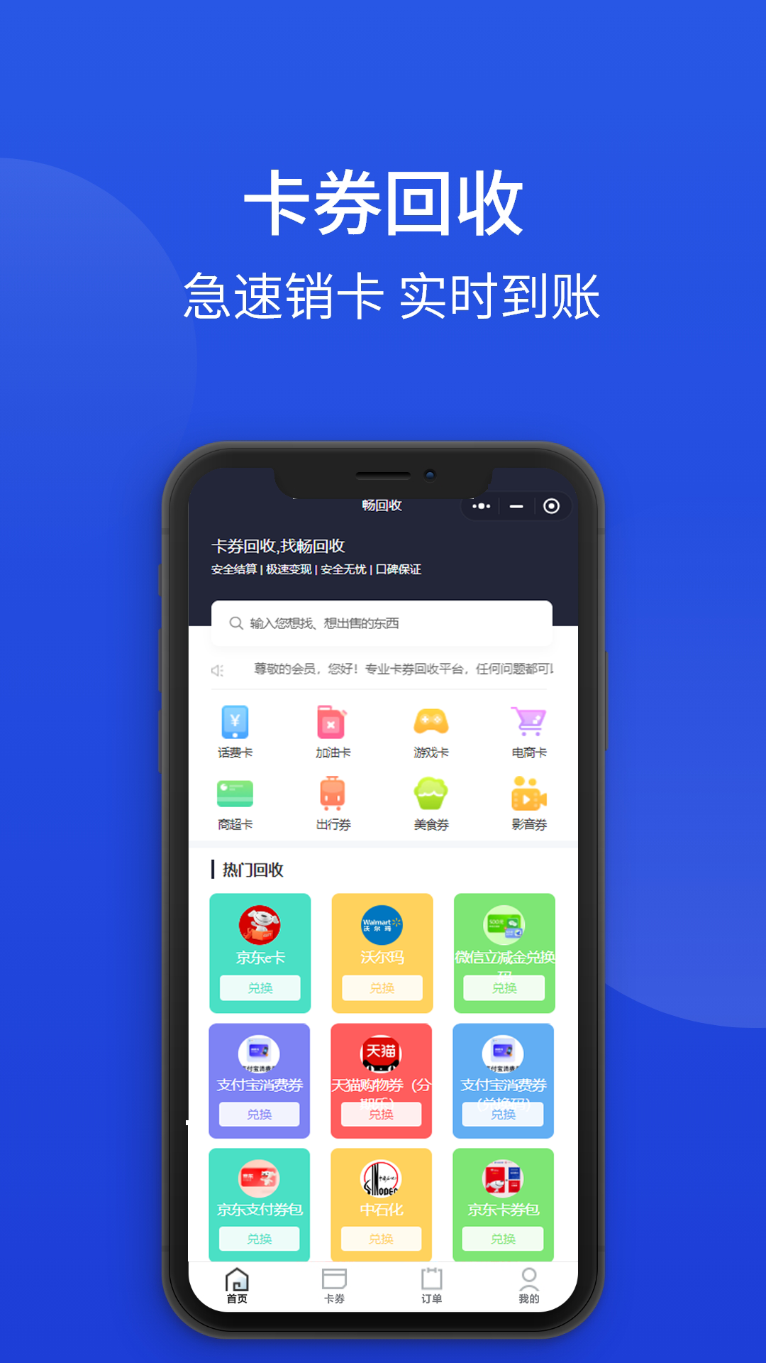 畅回收-专业的卡券回收平台 支持加油卡、话费卡、购物卡、电商卡、影音券、美食券等卡券16余种卡券回收 订单24小时自动处理,实时结算到账! 客服3秒内为您1对1服务。 安全性高,信息加密有保障