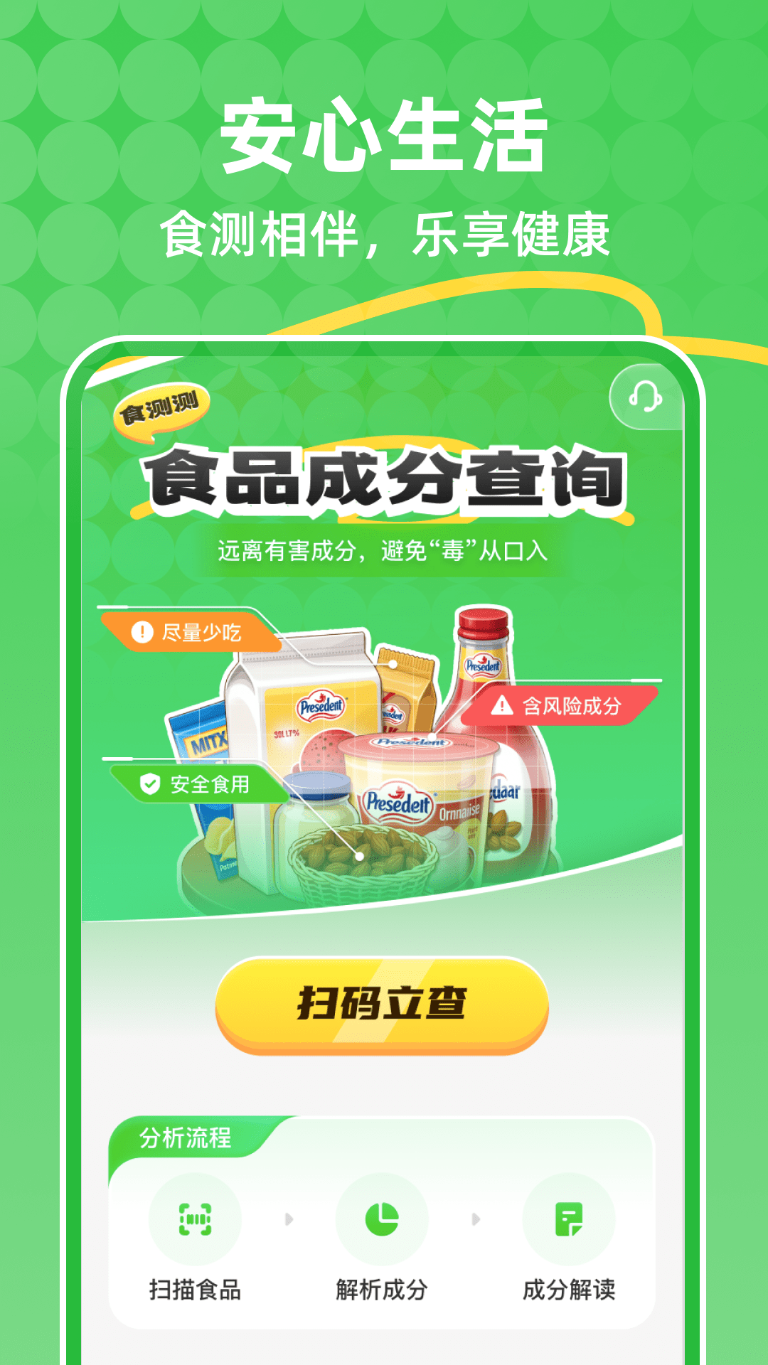 食测测APP,您的食品安全小助手。轻松一扫,识别食品信息,深度解析配料表,让您对吃进嘴里的每一口都了如指掌。 同时,我们还提供丰富的食品安全知识科普,助力您和家人吃得健康,吃得放心。