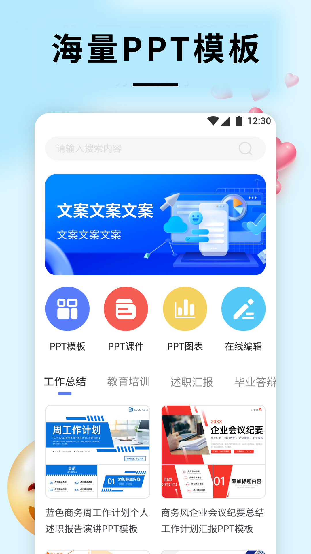 1.帮助你需要的办公资源文件,简化工作 2.快捷技巧让你熟能生巧,全面提升制作效率 PPT模板等模板应有尽有,简约大气、经典商务、实用扁平等不同风格模板,下载即可使用,让你的工作更高效。