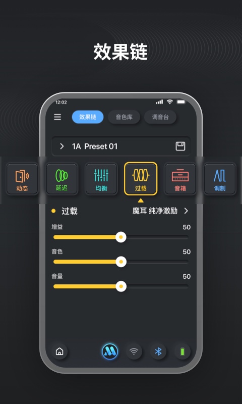 1. 稳定低延迟的蓝牙方案实现与Mooer iAMP音箱硬件系统的通信,实时显示Mooer iAMP音箱工作状态。 2. 可实现稳定快速的切换控制效果模型。 3. 非常直观的操作模式与新手用户友好的快捷指导示意。 4. 附带调音表.节拍器.鼓机练习工具软件。 5. 可通过软件实现云平台音色上传/下载的共享服务。
