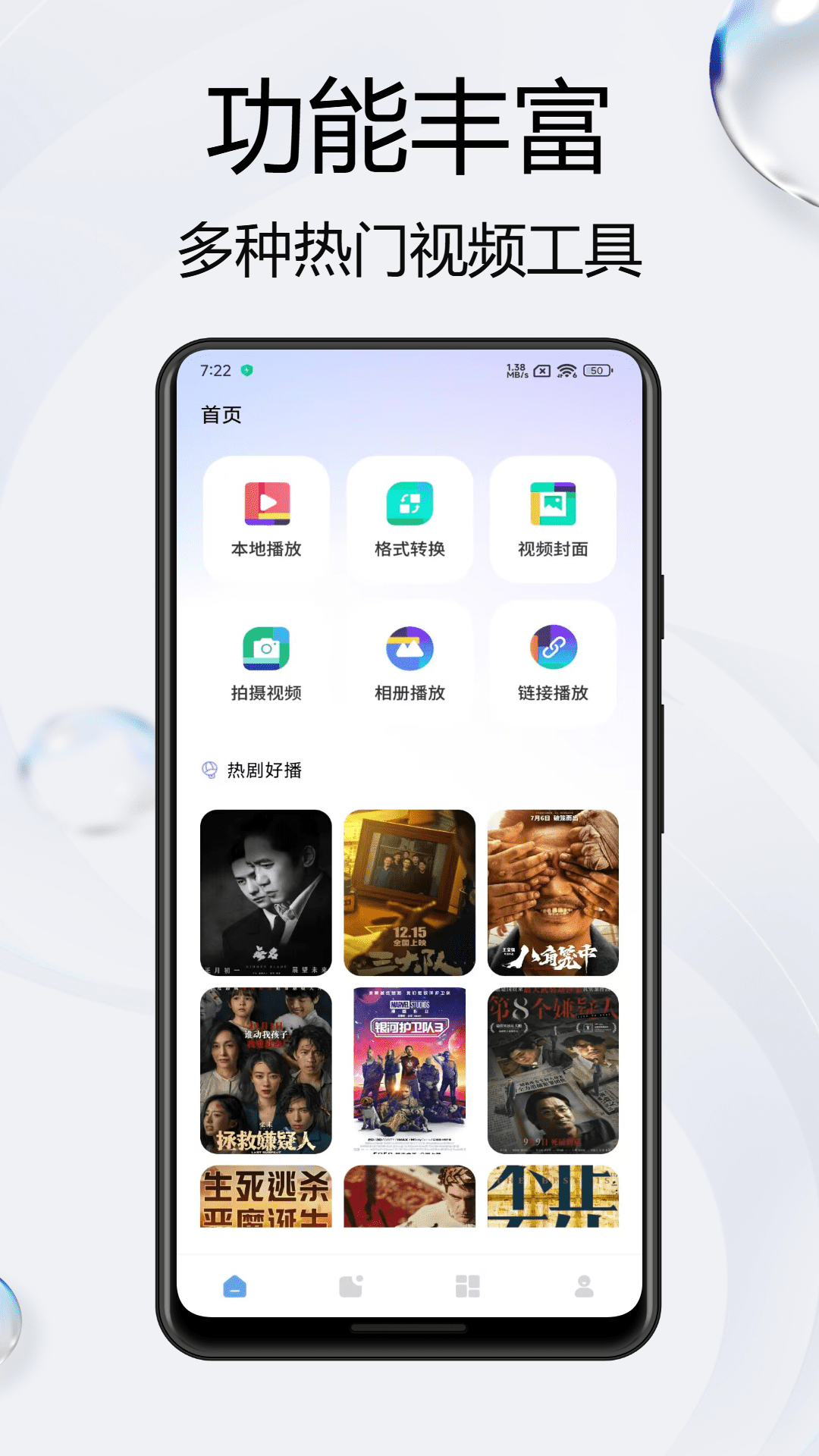 集成了视频格式转换、视频封面定制、相册播放、链接播放、视频倒放以及影视解说等六大核心功能。 而且界面设计简洁大方,操作流畅便捷,让您在享受视频处理乐趣的同时,也能轻松管理个人视频库。无论您是视频创作者、电影爱好者还是日常生活记录者,都能在这里找到满足您需求的视频处理与娱乐解决方案。立即下载,开启您的全能视频之旅!