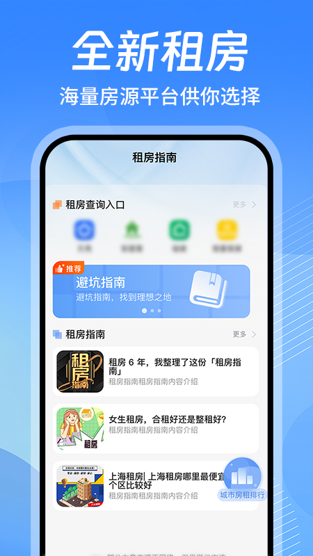 租房查询: 实时更新租房信息,让用户获取新的租房资讯。 *海量房源:二手房、新房、租房、商业地产 *特色找房:地图搜房、附近找房、轨交淘房 *商业地产:商铺写字楼出售出租,商务楼办公室租赁