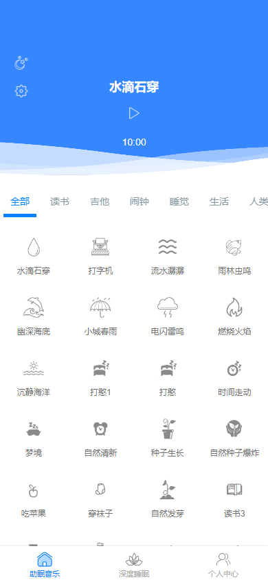 在剧本里做配角,充实自己的知识让自己做人生的主角。 不可能的事情不是不能完成,而已你的知识储备没达到。 目前已经更新了,自然类、城市类、生活类、人类等帮助睡眠的音乐。 功能特点: 提供多种促进睡眠的声音,如白噪音、冥想曲等。 有数学和英语课程帮助用户放松并进入睡眠状态。 能记录用户的睡眠状态,帮助用户了解失眠原因。 包含引导式冥想内容和场景化冥想课程。 优势: 融合自然声音和冥想,有助于排解压力,保持平静。 提供丰富的自定义功能,满足用户个性化需求。