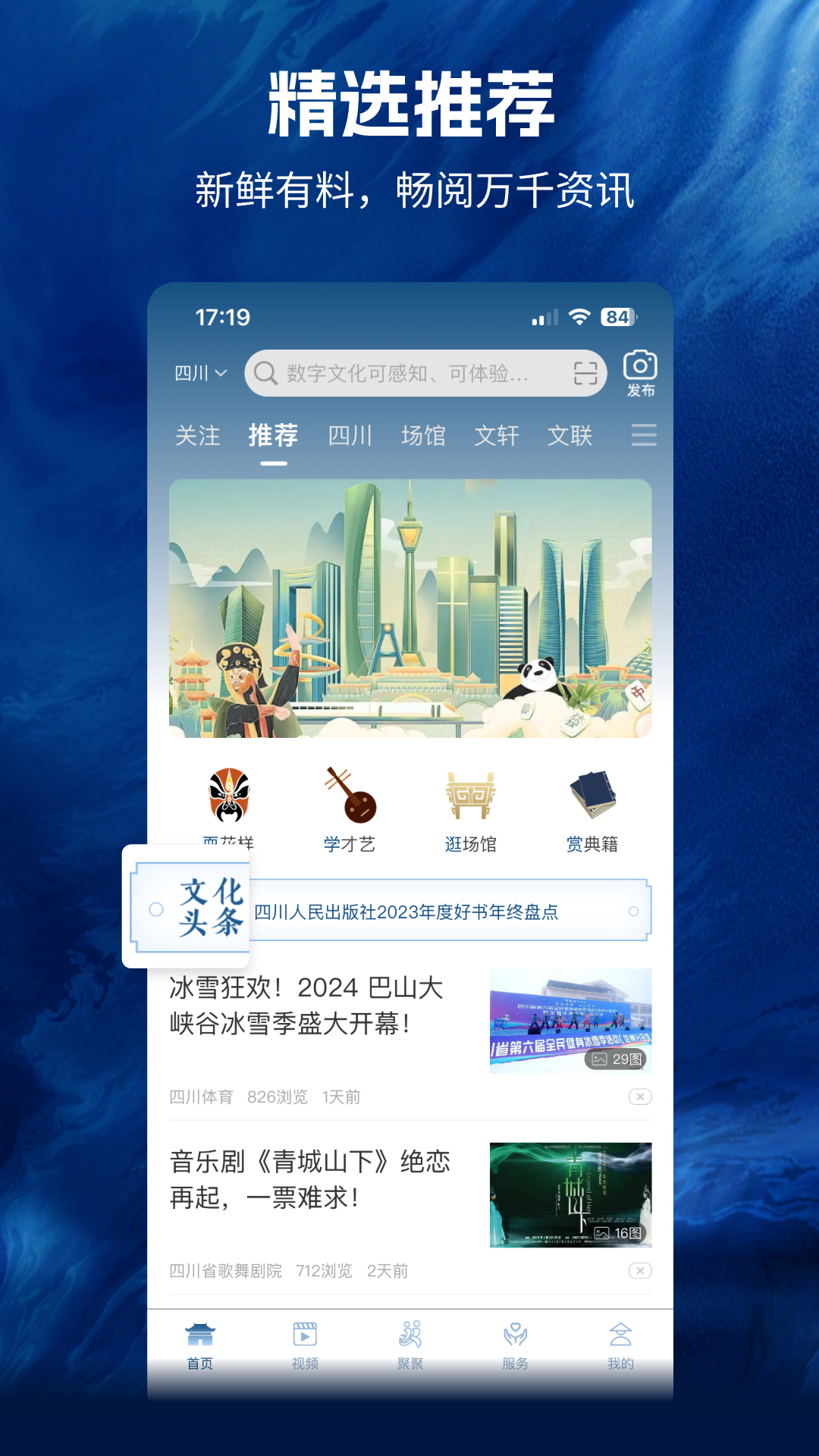 让文化可阅读,可感知、可体验。 【精选推荐】新鲜有料,畅阅万千资讯; 【本地场馆】东方神韵,传载千年文明; 【文联集锦】走进文艺,遨游艺术海洋; 【聚焦文轩】包罗万象,尊享文化视听; 【便民服务】用心承载,让生活更美好。