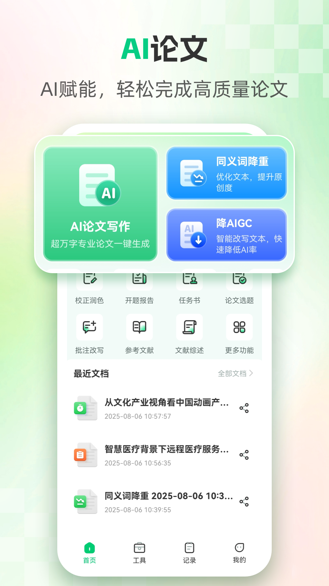 一款智能AI论文生成工具。 为用户提供高质量的毕业论文范文、开题报告和课程论文。显著提升你的写作效率,让你在学术道路上更加从容不迫。 ===个性特色功能=== 智能写作助手:采用先进的人工智能自然语言处理技术,进行AI写作创作,帮助用户优化论文结构、语法和表达,提升论文质量。 涵盖多个环节:毕业论文,开题报告、课程作业、小论文、小说、文章、抖音文案、公文写作等 数亿学术资料库支持:接入了全球数亿篇学术论文、期刊文章、会议论文、学位论文等,覆盖各个学科领域,为您提供丰富的参考资料。 ===适用场景=== 应届毕业生:准备毕业论文的学生可以快速生成高质量的论文范文,顺利完成学业。 研究生:在撰写硕士或博士论文时,可以使用我们的工具进行文献综述和研究设计,提升写作效率。 课程作业:要提交课程论文时,可以快速提供大纲和写作思路,帮助在短时间内完成任务。 学术研究:撰写学术论文、研究报告,进行文献综述;提高发表成功率。 科研项目:撰写科研项目申请书、中期报告和结题报告,确保文档的专业性和规范性。 企业报告:撰写企业内部报告、市场分析报告,提升报告的质量和可读性。 致力于为用户提供最全面、最专业的论文写作支持,帮助您高效完成论文写作和发表。 快下载体验这款功能强大的专业AI论文生成软件。让写作变得更简单、更高效!开始您的创作吧!