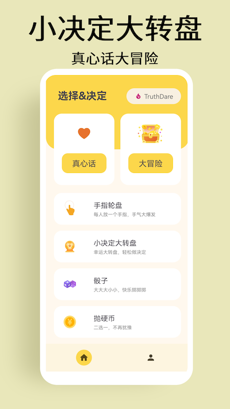 真心话大冒险,大转盘,小决定,手指轮盘,骰子,抛硬币等