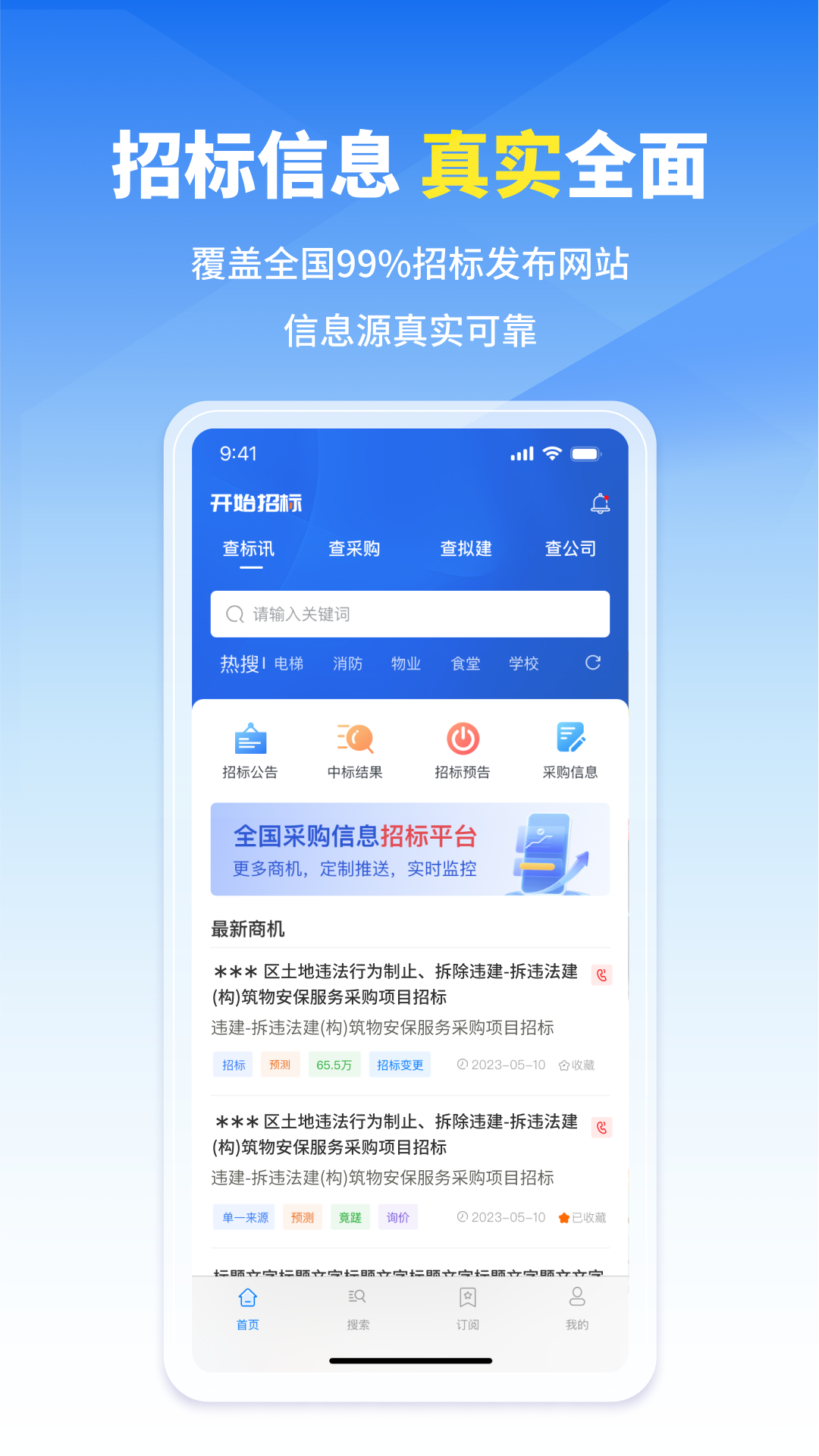 开始招标专业、快捷的招标采购平台,每日更新20w+招投标资讯,强大的渠道背景所打造的这款招商采购平台,精准定制您的商业需求,让你不管是投资还是想要投资都能够快速合理的找到合伙人,赶紧下载开始招标,招投标更快人一步!