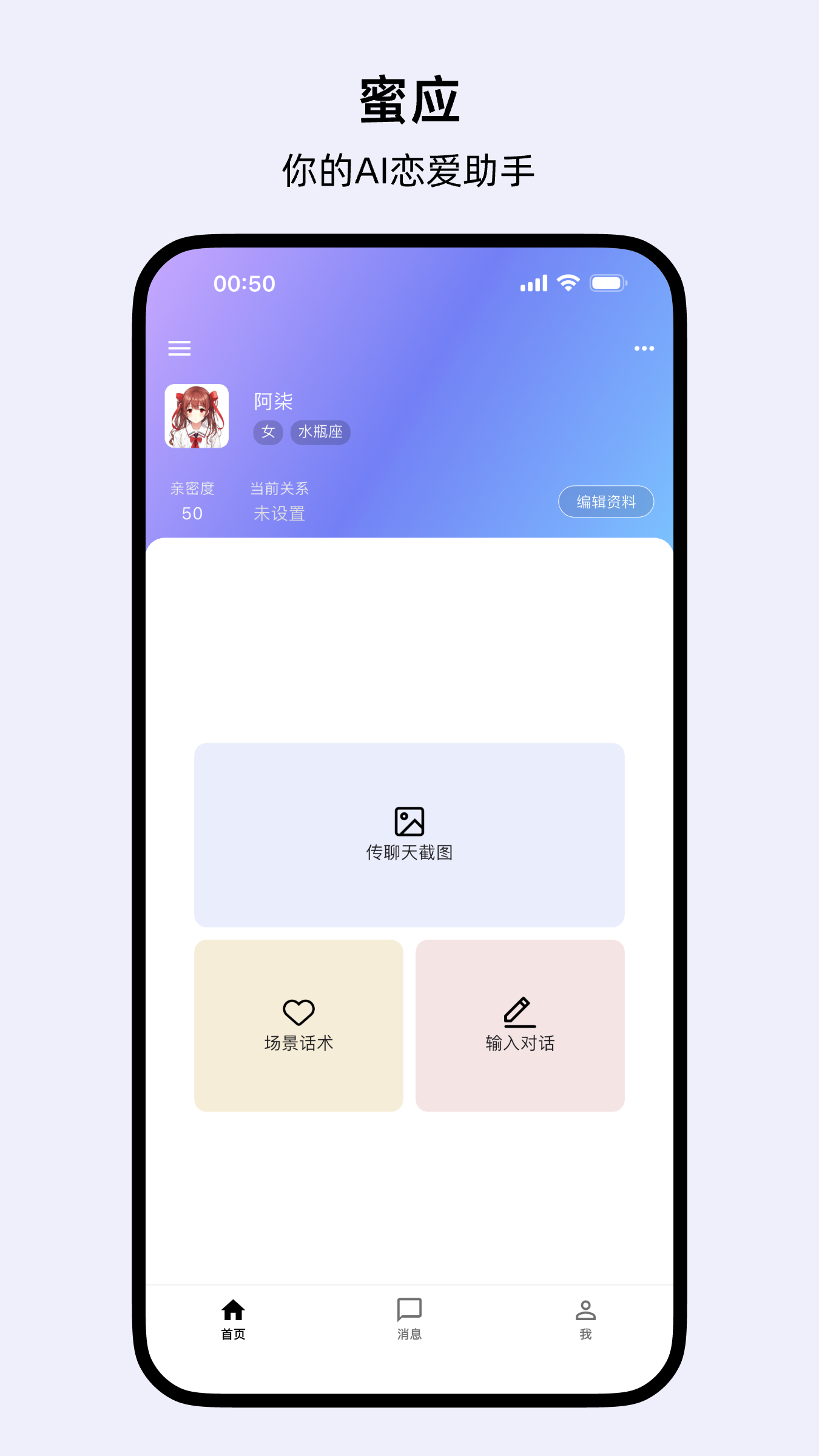 蜜应是一款AI恋爱助手,功能包括AI代答、生成聊天话术、AI陪伴等。通过AI智能生成高情商聊天话术,让你不再尬聊。AI还能化身好友并做恋爱顾问,为你提供暖心陪伴和沟通建议。利用AI技术,蜜应助你轻松脱单,获取甜蜜爱情。 主要功能 【识图答复】上传聊天截图,AI 快速理解语境,并为你生成答复(我们不会保存您的聊天截图,请放心上传)。 【对话代答】直接输入对话,秒获高情商回复。 【话术生成】AI针对具体场景,并结合你和对方的信息和关系,动态生成话术。 【个性化定制】配置你和心仪对象的基本信息、关系阶段,AI 将提供更贴合实际情况的答复。 【AI答复调节】自由设定 AI 回复的语气,让 AI 的回复更符合你的喜好和需求。 【AI好友】提供情感AI助手和问答AI助手,让AI不仅是能提供建议和策略的恋爱军师,还是可以倾听你的心事、提供情绪支持的私密伙伴。