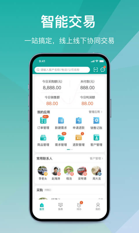 经营通经销版是一款专为经营农批生意商户定制的数智化经营系统。基于数智工具,系统打通上下游产业链,实现交易数据的无缝协同与实时同步。帮助商户优化采购与销售环节,有效降低成本、控制经营风险、提升运营效率,让农批经营更省心、更赚钱。 核心功能: 交易功能: 可销可退、交易灵活、批量编辑、十秒下单 支付系统: 线上支付、安全快捷、线下兼容、联网追溯 查单功能: 模糊搜索、智能分类、一查既有、搜你所需 商品管理: 品类齐全、智慧盘库、计量转换、切合习惯 筐子管理: 空置载货、智能区分、筐货关联、购退一体 财务管理: 成本配置、利润真实、赊账往来、智能核算 联网溯源: 实时交互、无法篡改、数据溯源、平台管控 经营统计: 实时统计、趋势清晰、盈亏预警、协控成本
