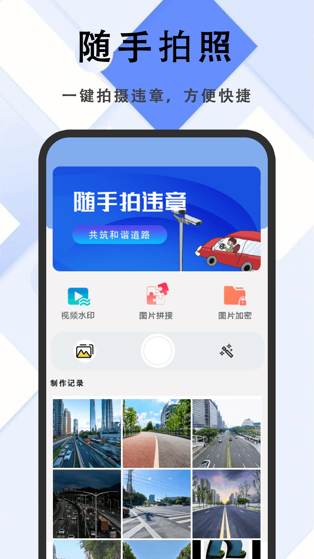 随手拍软件是一款帮助提升交通规范的软件,旨在改善交通违章行为。以下是该应用的核心功能: 违章拍照: 用户可以通过应用内置的拍摄功能,记录交通违法行为的证据。并且应用支持多种图片美化功能。 文件管理: 用户可以分类管理手机中的不同文件,从而方便保存拍摄各种违章照片
