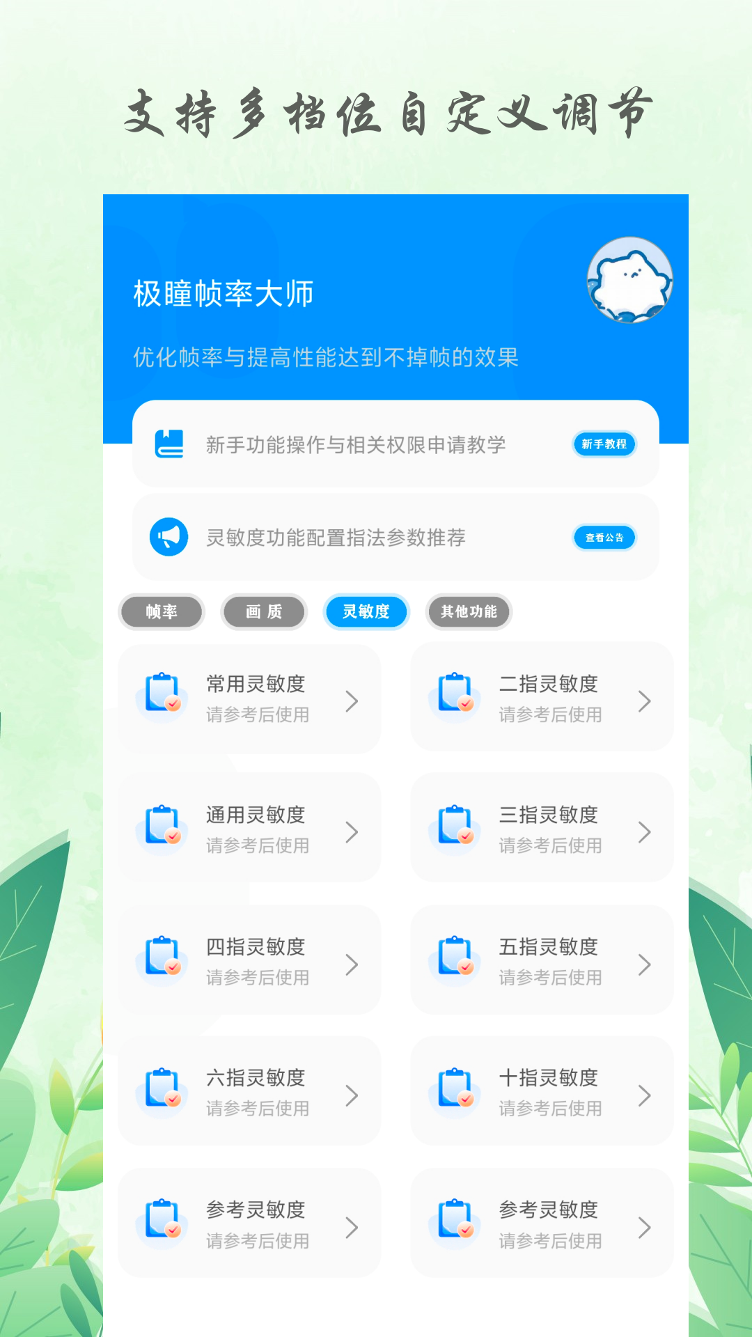 「极瞳帧率大师」是一款专注于提升操作精度的智能优化工具,通过两大核心模块——帧率优化、灵敏度调节及定位微控系统,为用户提供高度定制化的视觉与交互体验,适配多场景下的专业需求,帧率动态优化,智能分析动态变化,实时优化帧率稳定性,确保高负荷场景下仍能呈现丝滑流畅的视觉体验,支持多档位自定义调节,适配不同设备的性能阈值,平衡流畅度与功耗表现,灵敏度精控引擎,突破传统输入响应逻辑,提供0.001级精度调节,满足,设计、工业控制等领域对操作细腻度的严苛要求, 可针对不同硬件设备(触控屏、轨迹球、数位笔等)单独配置参数。