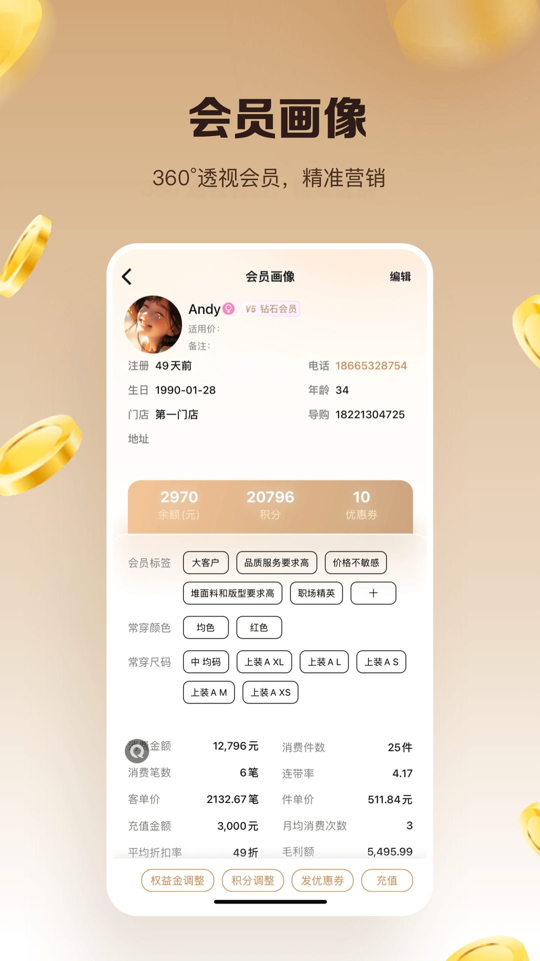 衣帮手·零售通是一款专门为服装零售店打造的管理软件,覆盖服装生意的全过程。以简单好用的进销存管理为基础(采购计划、货品入库、库存管理),着力打造以会员为中心的、线上线下相结合的、主动式营销管理。帮助服装零售店实现无缝集成的上下游协作,深度经营私域流量,快速实现多门店、全渠道的数字化经营。在新零售时代,让服装生意更轻松。 功能介绍:基础功能:高效管理货品和库存,极速开单,轻松记账,个性化营销,线上线下多渠道获客和锁客,基础数据和经营数据的统计。 核心特色功能: 【会员画像】了解会员的特征、需求和行为,给会员打标签,分类以及回访等,提供更加个性化的服务和精准营销策略。 【会员营销】完善的会员体系,解决会员新增和留存、营销和推广、会员数据管理以及会员价值提升等问题。 【营销活动】丰富的营销活动,个性化营销和服务,提高会员忠诚度和购买行为,从而实现销售增长和客户价值最大化。 【会员商城】会员可在线看款下单,享受积分,优惠券,权益金等专属福利优惠,获客锁客更容易。 【库存预警】通过库存监控和数据分析,设定预警规则和指标,及时采取相应的库存调整和补货决策,最大限度地降低库存成本和风险。 【采购计划】根据全年营业额,销售和采购情况制定当季采购和上货计划,更加合理的控制采购成本,按需进货,获得最大的经济效益。 【数据分析】更全面的数据维度和更精准数据分析,实时掌握经营动态,帮助商户做出准确的判断和决策。 使用中遇到任何问题可以通过我们的客服热线(400-808-9889)进行反馈,我们会以行业专家的方式为您提供全方位的支持!