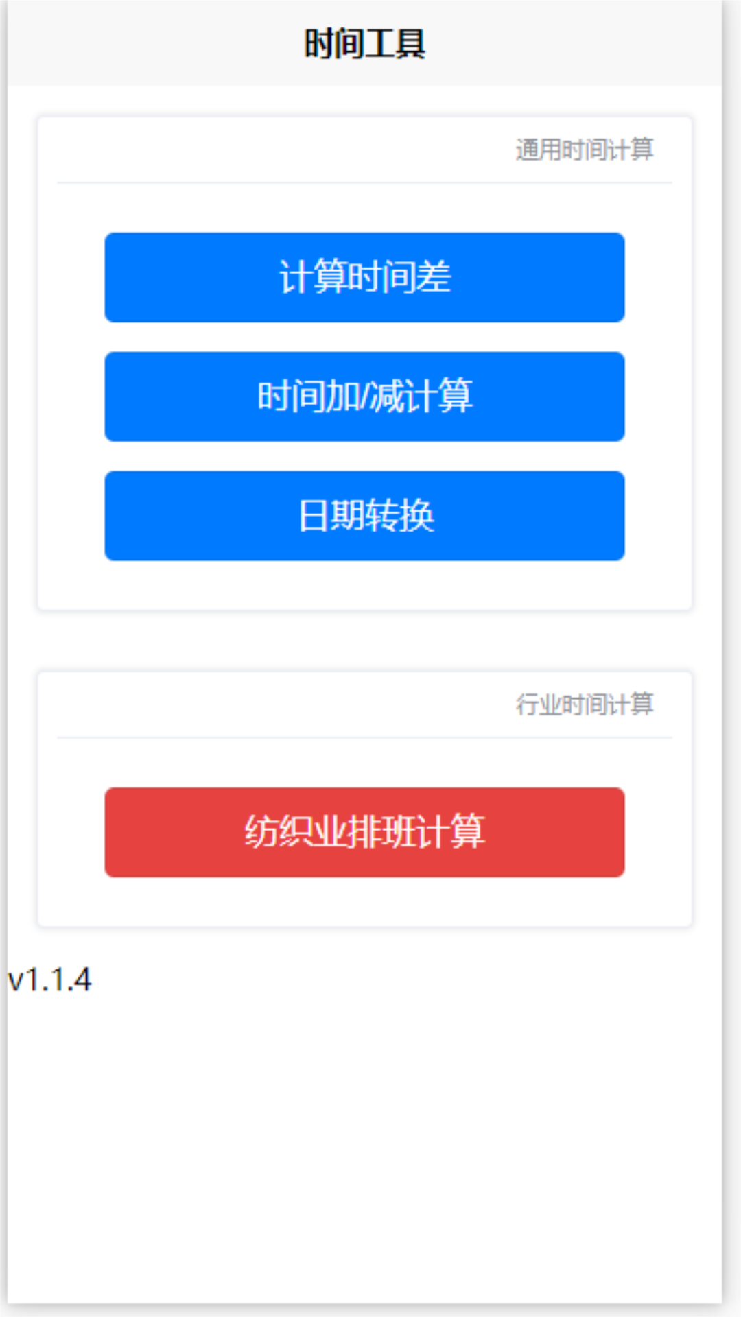 免费的时间计算工具,主要提供时间差的计算和时间的加减计算。以及一些专业生产方面的时间计算,例如根据纺织业工作特点进行的班组排班计算。
