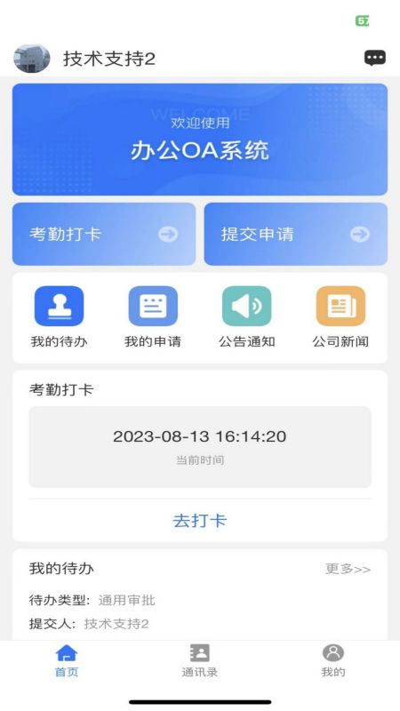 一款企业内部使用的OA管理系统,可以实现线上打卡签到,线上发起流程和线上对流程进行审批等功能。