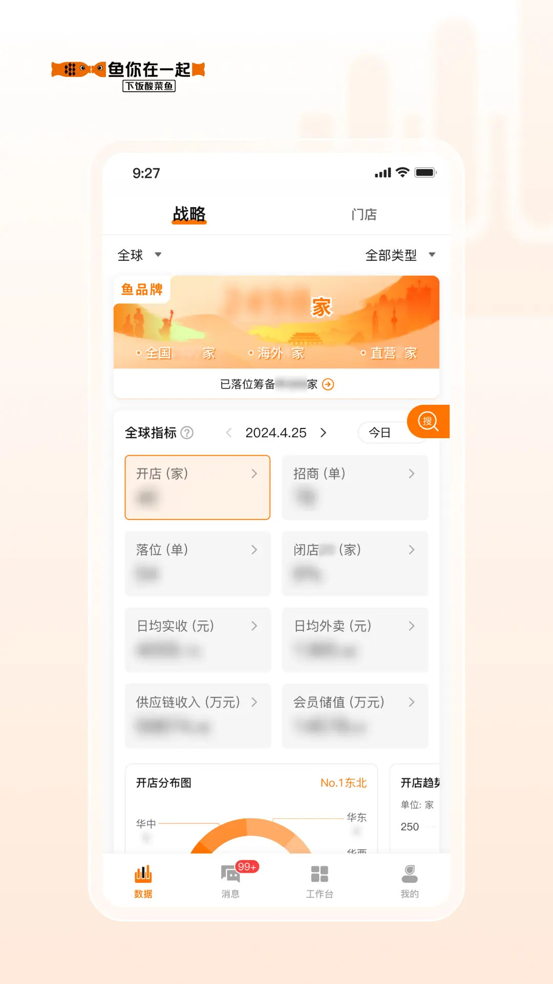 鱼司令是鱼你在一起营运管理层的实用助手,它可以展示门店数据汇总、排名、趋势分析、达成率、门店智能筛选、数据可视化、智能工作台等,数据及时准确,给管理人员带来便捷高效的使用体验。