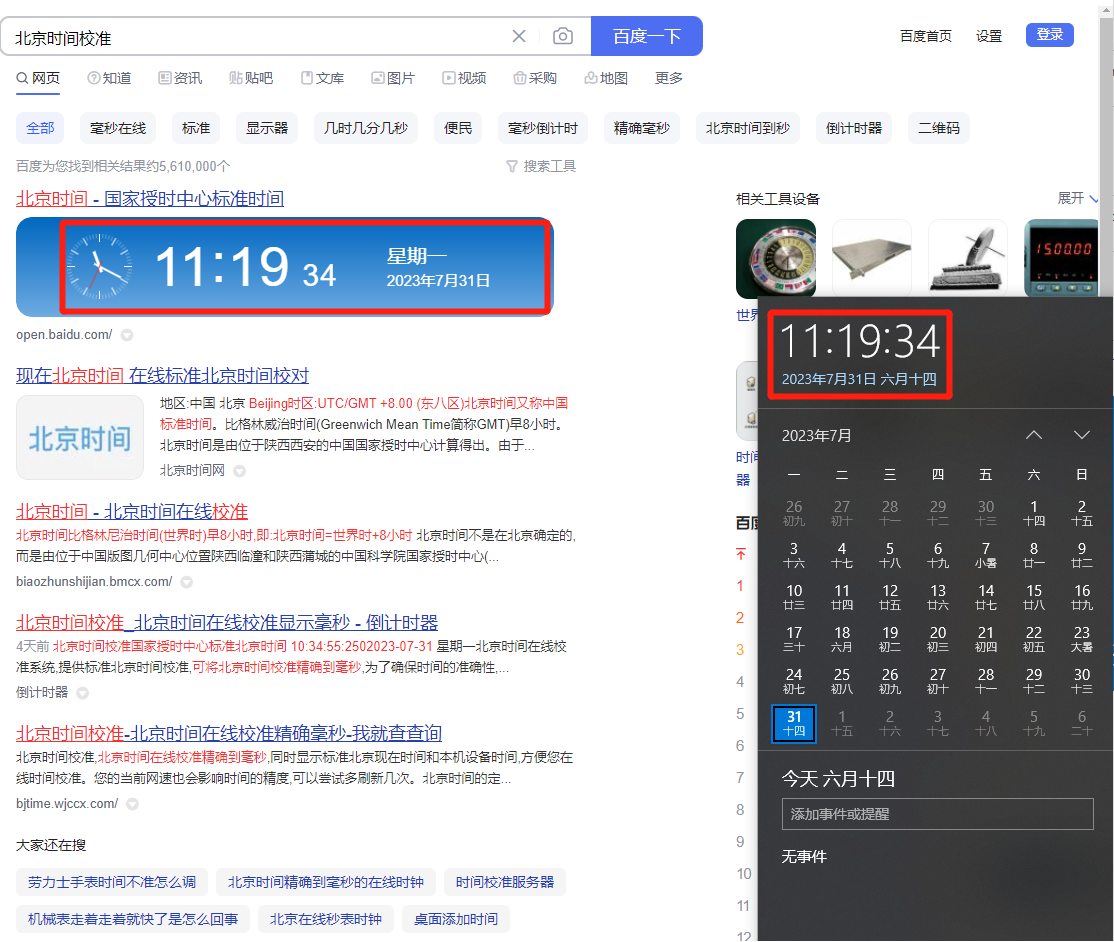 3、搜索北京时间进行校正。