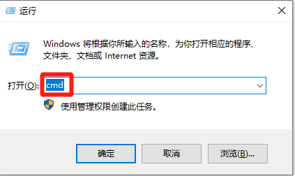 1、打开电脑,进入命令提示符窗口,快捷键Win+R,在窗口中输入“cmd”进入命令符窗口