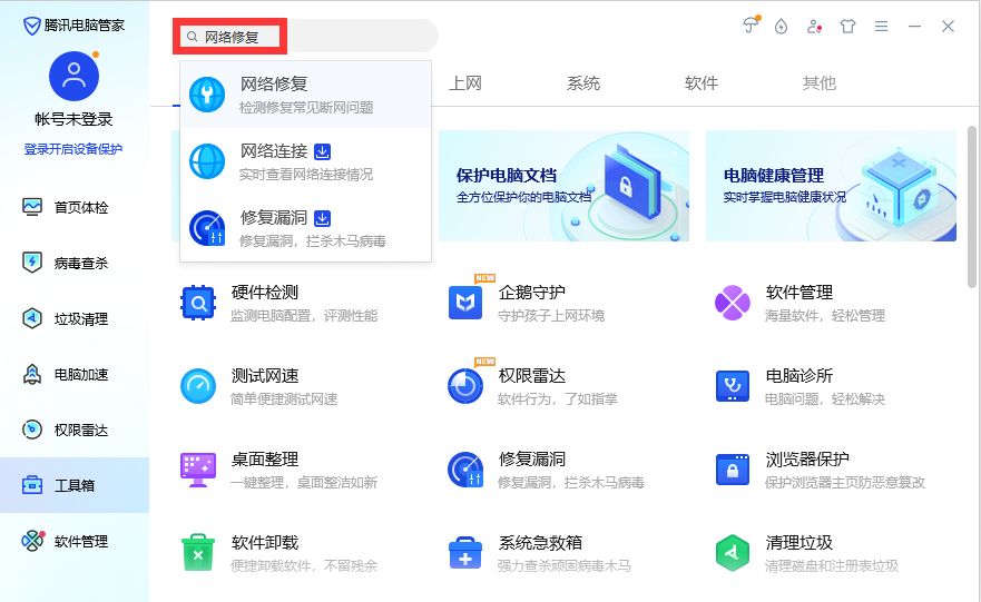 一、使用电脑管家进行网络修复