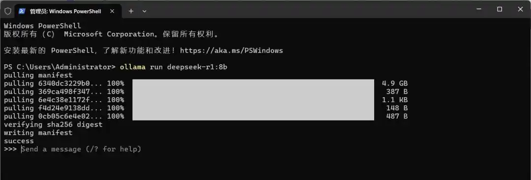 打开命令行(Windows 用户按 Win + R,输入 cmd),粘贴并运行上述命令。模型将自动下载并安装。