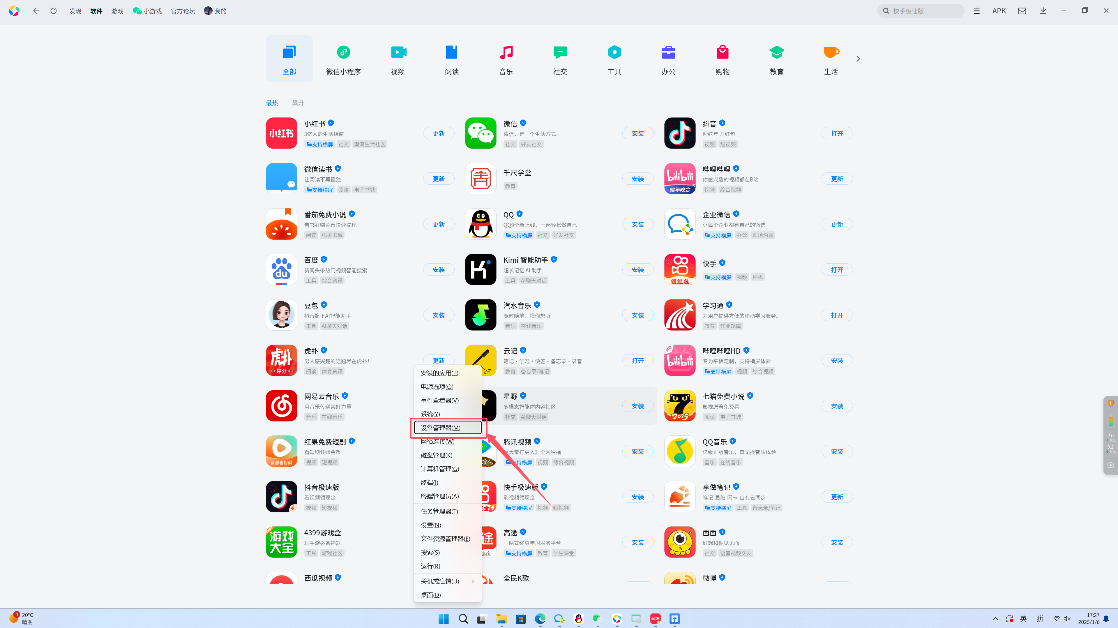 (1)点击Win键(键盘左下角Ctrl与Alt按键中间)+X,唤起设备管理器